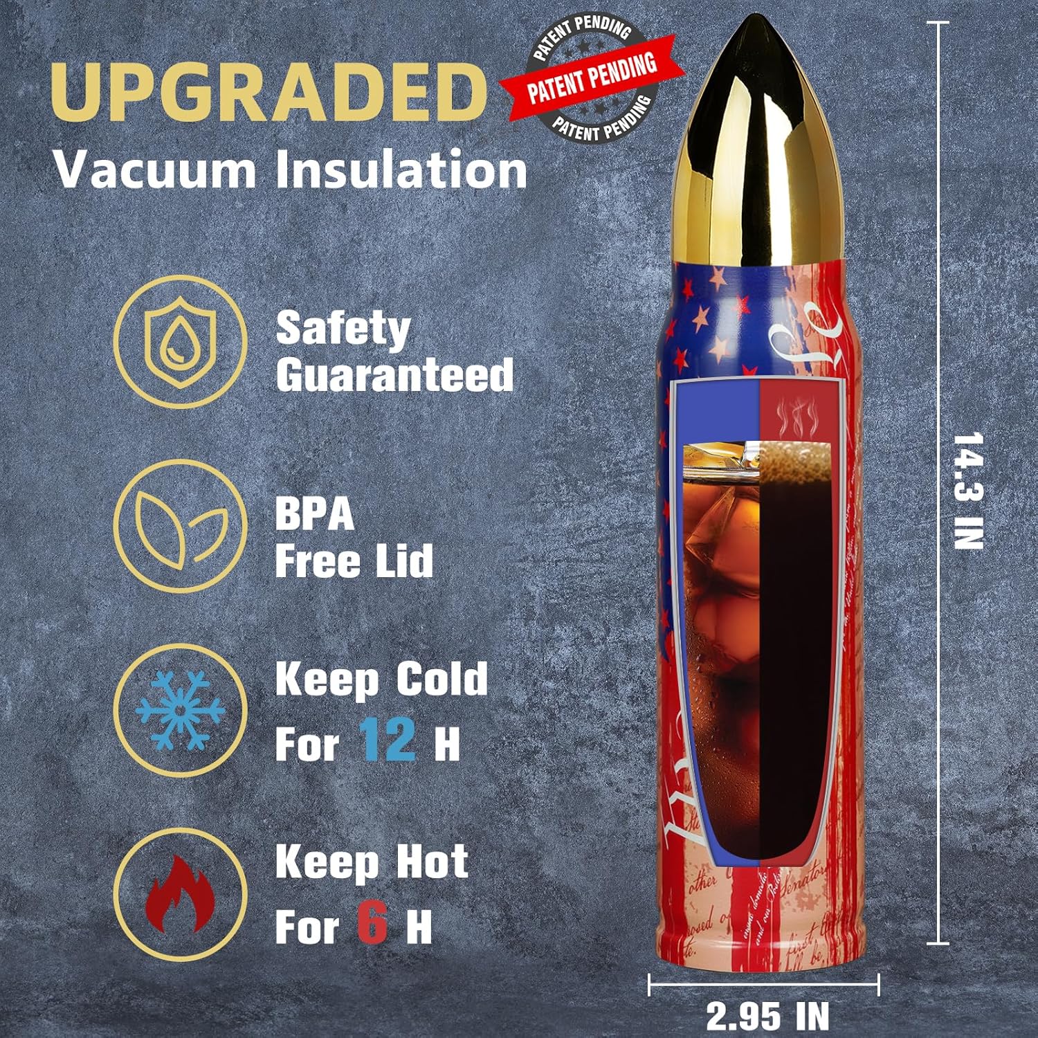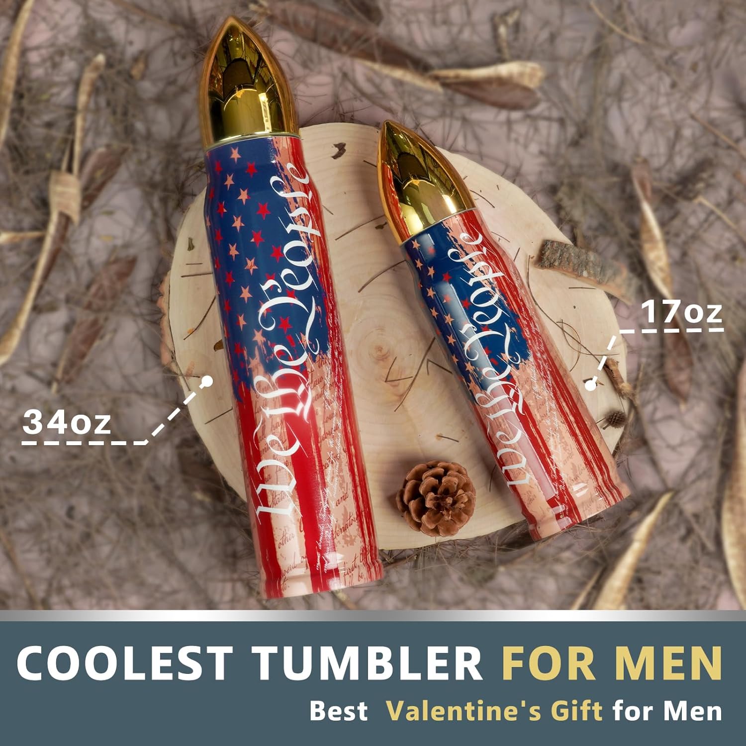 - Portable 34oz Bullet Water Bottle: Our bullet cup fits most car cup holders. You can enjoy drinks with the gun gifts for men unique at many occasions such as home, office, fishing, hunting, beach, camping, picnic, hiking, etc. Also it is a cool home decor